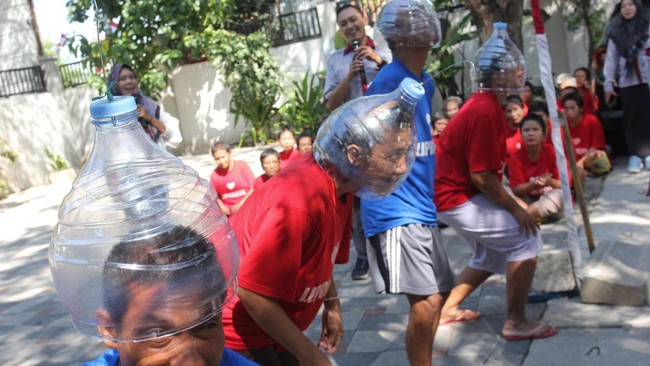 Surabaya - Sejumlah warga binaan Lingkungan Pondok Sosial (Liponsos) Keputih mengikuti beragam lomba. Acara ini untuk menyambut HUT ke-79 Republik Indonesia.