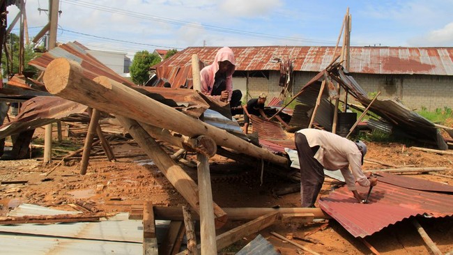 Pontianak - Angin puting beliung disertai hujan deras menerjang wilayah Pontianak, Kamis (8/8/2024) malam. Akibatnya 9 rumah warga dan satu gudang rusak berat.