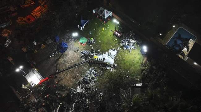 Brasil - Pesawat Voepass jatuh di Vinhedo, negara bagian Sao Paulo, Brasil. Kondisi pesawat ATR 72-500 itu hancur usai jatuh di daerah permukiman di kota Vinhedo.