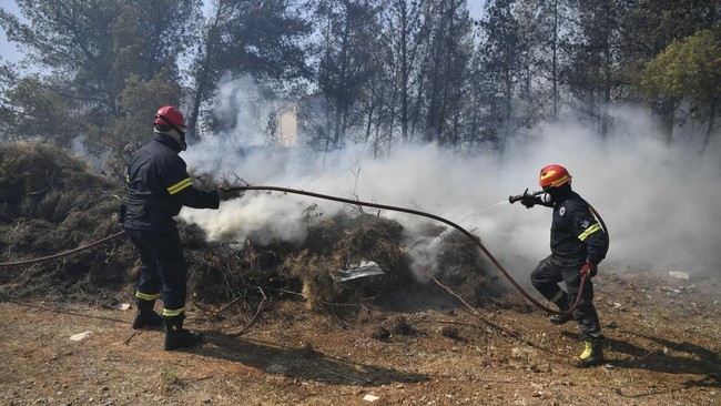 Aksi Damkar Berjibaku Padamkan Kebakaran Hutan di Yunani