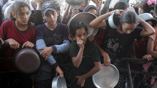 Palestina - Konflik antara Israel dan Hamas membuat warga Palestina terancam kelaparan. Termasuk anak-anak ini.