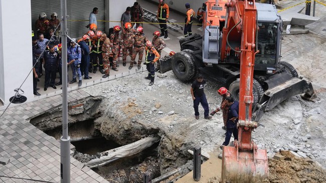 Petugas Evakuasi Wanita Jatuh ke Lubang Pembuangan di Malaysia