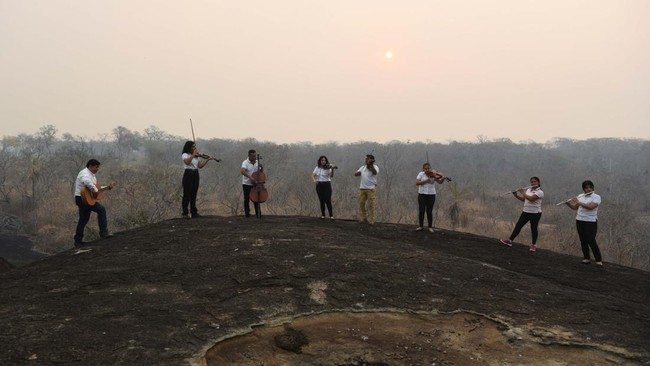 Curi Perhatian, Aksi Bermain Musik di Tengah Kebakaran Hutan Bolivia