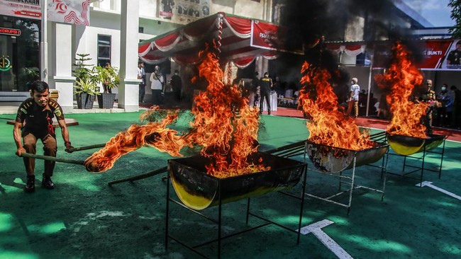 Ternate - Kejaksaan Negeri Ternate melakukan pemusnahan barang bukti narkoba, Jumat (6/9/2024). Pemusnahan dengan cara dibakar di halaman Kantor Kejaksaan Negeri Ternate.