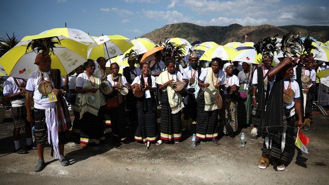 Umat Katolik Menanti Paus Fransiskus di Tengah Teriknya Cuaca Dili