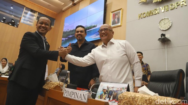 Jakarta - Menteri ESDM Bahlil Lahadalia mengikuti rapat kerja (raker) bersama Komisi VII DPR. Raker itu membahas penyesuaian RKA K/L Tahun Anggaran 2025.