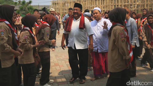 Jakarta - Bacawagub Jakarta dari PDIP Rano Karno menyambangi Pondok Pesantren Az-Ziyadah, Klender, Duren Sawit, Jakarta Timur. Rano Karno disambut dengan tepuk pramuka.