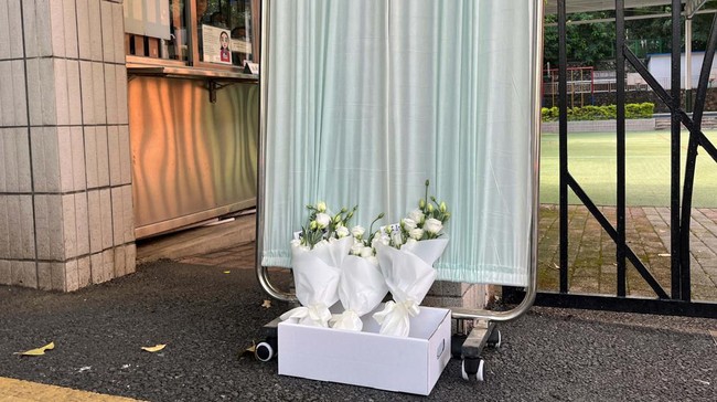Karangan bunga diletakkan di luar Sekolah Jepang Shenzhen, menyusul tewasnya seorang anak berusia 10 tahun setelah ditikam oleh seorang penyerang dalam perjalanan ke sekolah, di Shenzhen, provinsi Guangdong, Tiongkok, 19 September 2024.