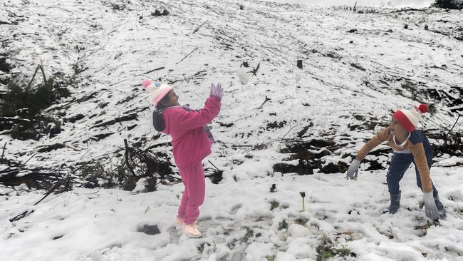 Afrika Selatan - Hujan salju yang jarang terjadi dan lebat menyelimuti beberapa bagian wilayah Afrika Selatan. Fenomena ini menghebohkan warga setempat.