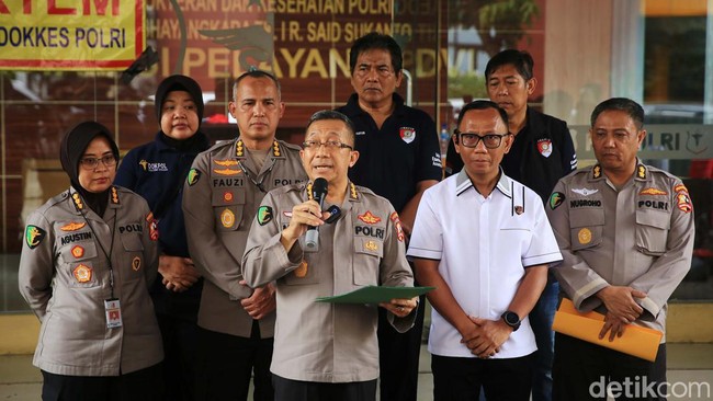 Kombes Herry Wijatmoko memberikan keterangan pers di RS Polri, Kramat Jati, Jakarta Timur, Senin (23/9/2024).