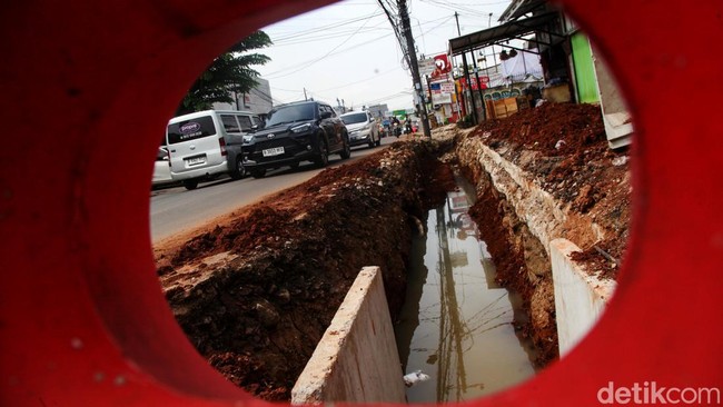 Tangerang Selatan - Proyek galian tengah dikerjakan di Jalan Cireundeu Raya, Tangerang Selatan (Tangsel). Sayangnya, proyek ini tidak terdapat pengaman atau pagar pembatas.