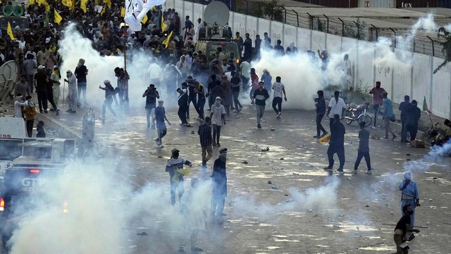 Pakistan - Aksi unjuk rasa protes pembunuhan terhadap Pemimpin Hizbullah Hassan Nasrallah di Pakistan berakhir ricuh. Massa terlibat bentrok dengan petugas di Kedubes AS.