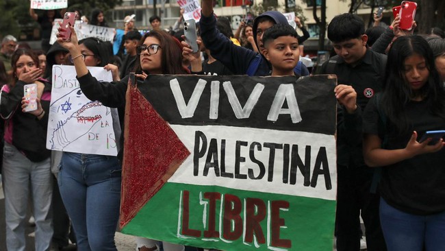 Jakarta - Sejumlah negara memperingati satu tahun perang Israel-Hamas di Gaza dengan aksi protes dan solidaritas. Demo digelar di London, Bogota, hingga Los Angeles.