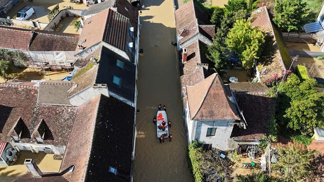 Prancis - Badai Kirk menyebabkan hujan deras turun di wilayah Prancis. Akibatnya kawasan Crecy-la-Chapelle, Prancis, terendam banjir.