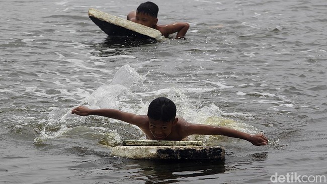 Jakarta - Cuaca panas yang terjadi beberapa hari terakhir mendorong anak-anak mendinginkan badan dengan bermain air. Ini potretnya.