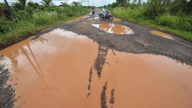 Jalan di Tanjung Jabung Timur Jambi Bak Kubangan Kerbau