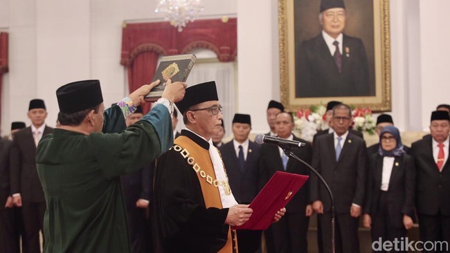 Jakarta - Presiden Prabowo mengambil sumpah Ketua MA Sunarto. Sunarto sebelumnya terpilih menggantikan Syarifuddin yang memasuki masa pensiun pada November 2024.