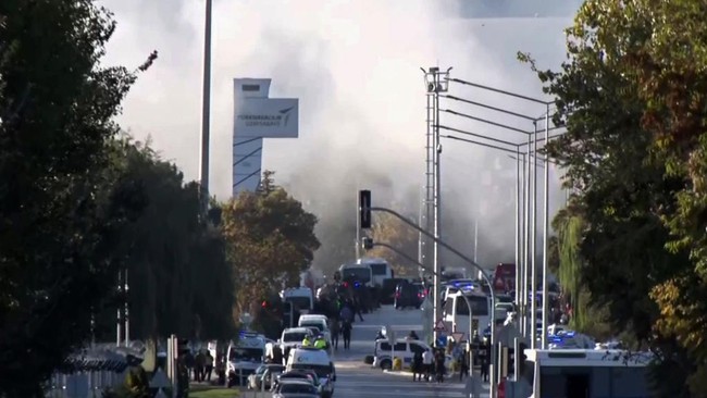 Sebuah ledakan menghantam kantor pusat Industri Dirgantara Turki (TUSAS) di dekat Ankara, Turki, Rabu (23/10/2024). (IHA via AP)