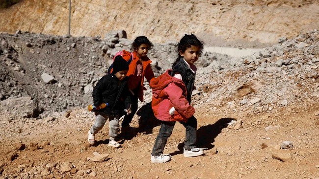 Anak-anak Lebanon Mengungsi ke Suriah dengan Berjalan Kaki