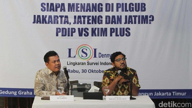 Jakarta - Lembaga LSI Denny JA merilis hasil survei Pilkada 2024. Survei Nasional itu bertajuk 'Siapa Menang Pilgub Jakarta, Jateng dan Jatim? PDIP Vs KIM Plus'.