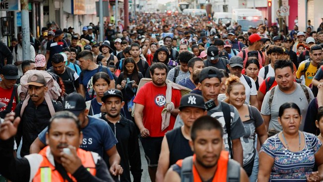 Meksiko - Karavan yang terdiri dari sekitar 3.000 migran berangkat dari Meksiko selatan, menuju AS. Mereka berharap bisa memasuki AS sebelum penentuan presiden baru.