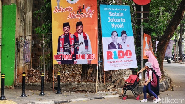 Jakarta - Pada bulan kedua masa kampanye Pilkada Jakarta, spanduk mulai bertebaran di tempat umum. Foto, program, dan janji manis paslon dijadikan bahan utama APK.
