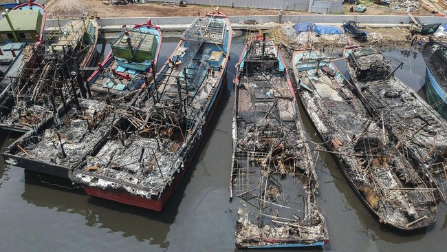 Kondisi Belasan Kapal Nelayan Usai Terbakar Hebat di Pekalongan