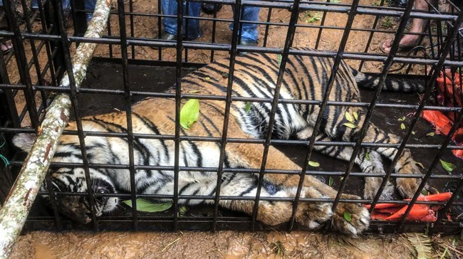 Penampakan Harimau Sumatera yang Masuk Perangkap di Solok