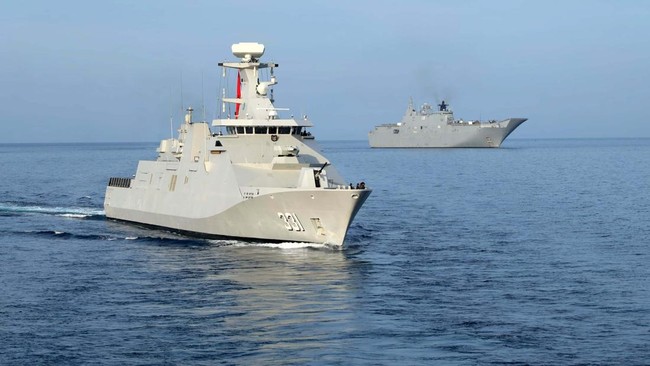 Natuna - Dua kapal perang RI, KRI MKS-590 dan KRI REM-331 laksanakan Farewell Pass dengan 2 kapal perang Australia, HMAS ADELAIDE L01 dan HMAS STUART 153. Ini momennya.