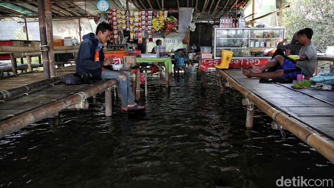 Jakarta - Banjir rob menerjang sejumlah wilayah di pesisir Jakarta. Salah satunya di Pantai Marunda, Cilincing, Jakarta Utara.