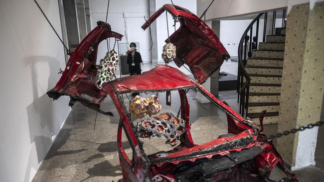 Jakarta - Pameran tunggal Hyun Nahm bertajuk 'Kawah Ojol' digelar di Galeri ROH, Jakarta. Yuk lihat dari dekat pameran seni rupa instalasi tersebut.