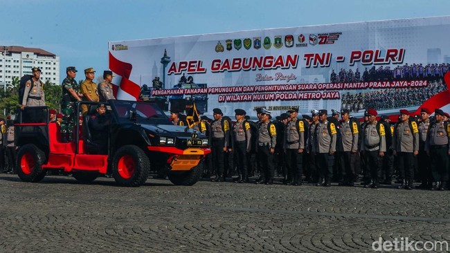 Jakarta - Polda Metro Jaya bersama TNI gelar apel gabungan Operasi Mantap Praja pengamanan Pilkada 2024 di wilayah Jakarta Raya. Apel digelar di Monas, Jakarta.