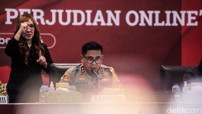 Jakarta - Polda Metro Jaya tetapkan 24 tersangka kasus mafia buka akses judi online (judol) yang melibatkan pegawai Komdigi. Uang Rp 76,9 miliar hingga lukisan disita.