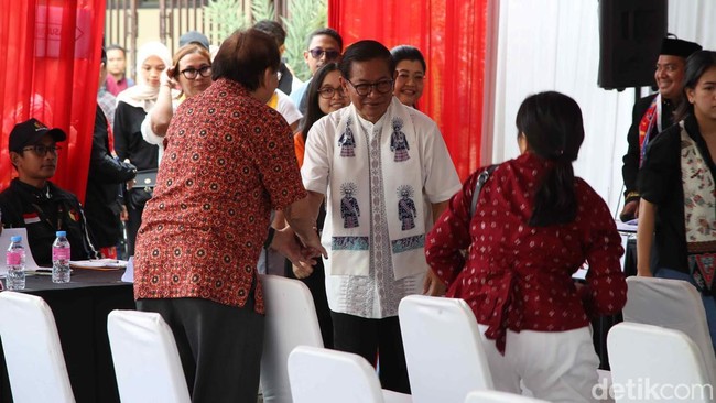 Jakarta - Cagub Jakarta nomor urut 3, Pramono Anung memberikan hak suaranya di TPS 046 dalam Pilkada Jakarta 2024. Pramono mencoblos bersama istri dan anaknya.