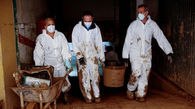 Valencia - Banjir bandang yang menerjang Valencia, Spanyol, telah berlalu sebulan lalu. Namun hingga kini, aksi bersih-bersih lumpur sisa banjir masih dilakukan.