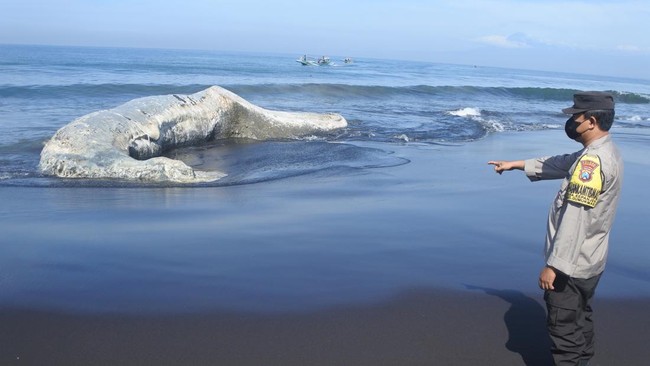 Paus Hidung Botol Mati Terdampar di Pantai Jember