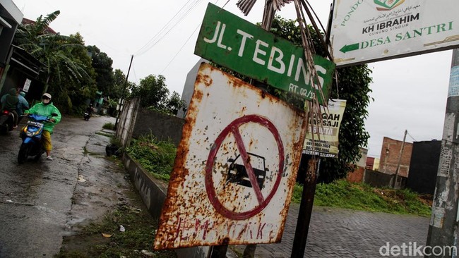 Depok - Jalan Tebing menjadi jalan tembus favorit pemotor di perbatasan Depok dan Bogor. Jalan yang membelah Kali Angke ini sempit dan licin.