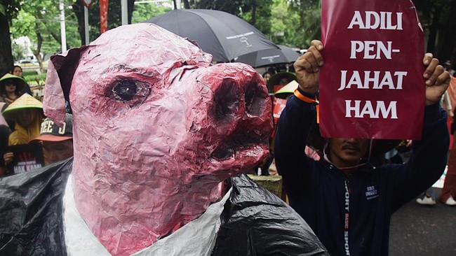 Jakarta - Massa dari berbagai elemen dan korban kekerasan HAM, gelar aksi jalan kaki di Jakarta. Mereka memperingati peringatan Hari Hak Asasi Manusia (HAM) Sedunia.