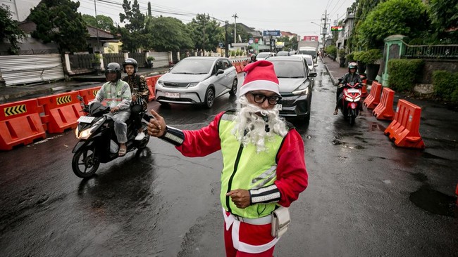 Potret Unik 'Sinterklas' Atur Lalu Lintas di Solo