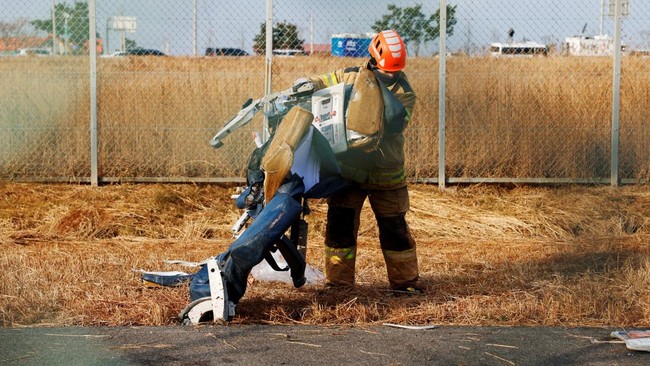 Korea Selaan - Puing-puing pesawat Jeju Air berserakan di sekitar lokasi kecelakaan di Bandara Internasional Muan, Korsel. Ini penampakannya.