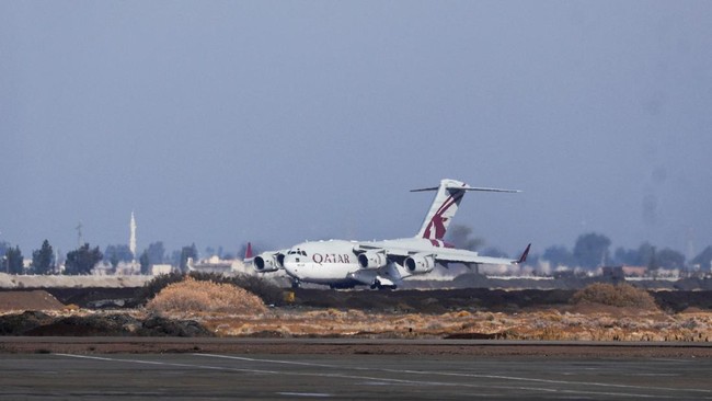 Damaskus - Sebuah pesawat yang membawa bantuan dari Qatar telah mendarat di Bandara Internasional Damaskus. Pengiriman bantuan tersebut mencakup 30 ton pasokan makanan.