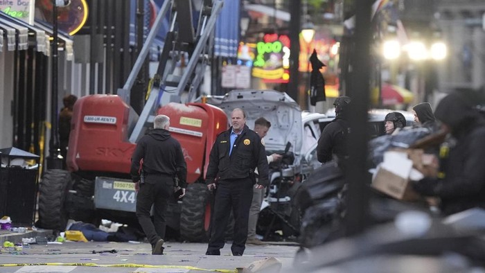 Dilansir kantor berita AFP, Rabu (1/1/2025), Kepala Polisi AS Anne Kirkpatrick menjelaskan peristiwa itu terjadi hari ini waktu setempat. Pria tersebut sengaja menabrak kerumunan orang yang berada di pesta itu sebanyak mungkin. (AP Photo/Gerald Herbert)