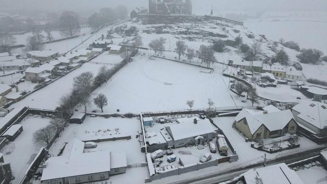 Irlandia - Hujan salju menutupi kawasan Cashel, Irlandia. Begini pemandangannya dari udara.