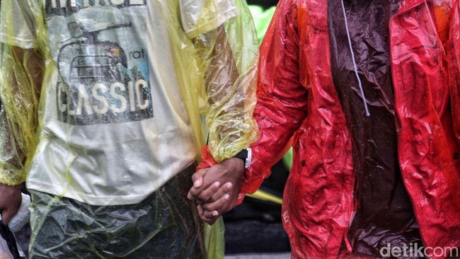 Beragam Cara Warga Terobos Hujan yang Mengguyur Sejak Pagi