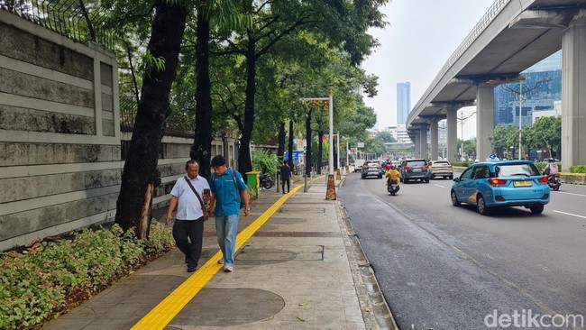 Jakarta - Trotoar di kawasan HR Rasuna Said, Jakarta Selatan, kini mempunyai wajah baru. Begini potretnya.