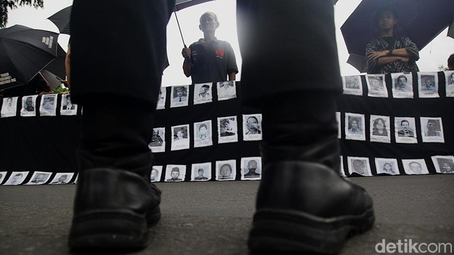 Jakarta - Sejumlah pegiat HAM kembali menggelar aksi Kamisan di depan Istana Merdeka, Jakarta, Kamis (9/1/2025). Aksi ini telah memasuki pekan ke-846.