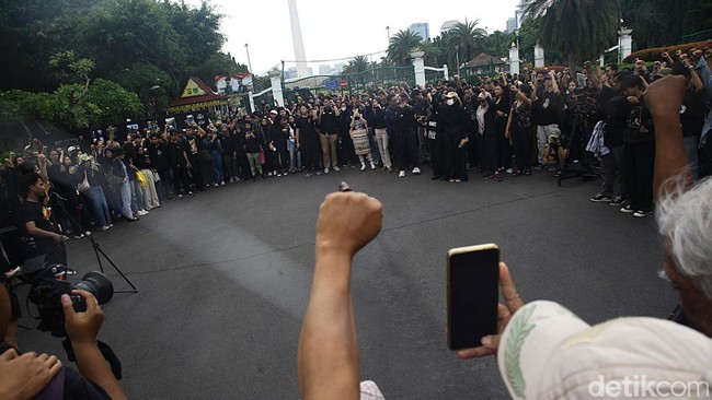 Jakarta - Aksi Kamisan ke-847 digelar di depan Istana Merdeka, Jakarta, Kamis (16/1/2025). Selama 18 tahun, aksi Kamisan telah melewati empat presiden.