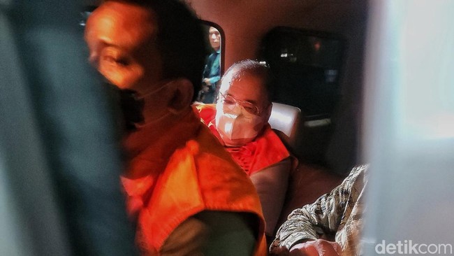Martono dan Rachmat Utama Djangkar (berkacamata) digelandang ke mobil tahanan untuk ditahan sebagai tersangka, di gedung Merah Putih KPK, Jakarta, Jumat (17/1/2025).