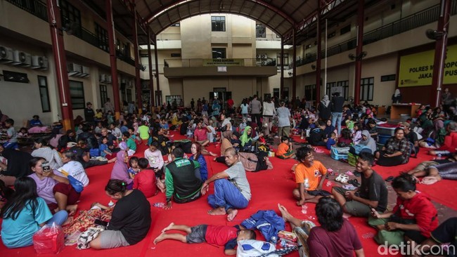 Jakarta - Korban kebakaran di Jalan Kemayoran Gempol, Kebon Kosong, Jakarta Pusat diungsikan ke posko bencana Polres Metro Jakarta Pusat. Begini kondisinya.