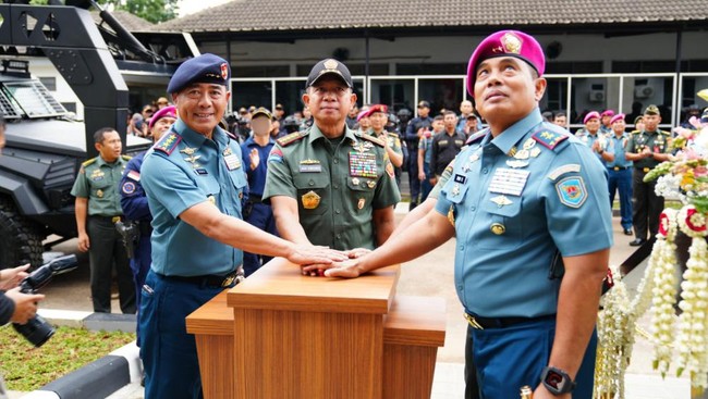 Jakarta - Panglima TNI Jenderal Agus Subiyanto meresmikan Gedung Trisula Denjaka di Cilandak, Jakarta Selatan. Agus juga menyerahkan ransus mobile dual ramp system.